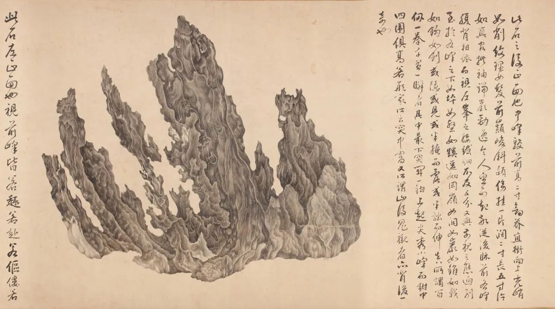 这幅明代长卷的内容十分丰富,不单单使后人得以领略古人赏玩奇石的文化,更串联起了明代的艺术创作、收藏品位、文人交游等课题,承载着一场跨越时空的交谈,体现了中国文人追求的古意传承,是研究中国明代艺术史、物质文化史与思想文化史的绝佳切入点。