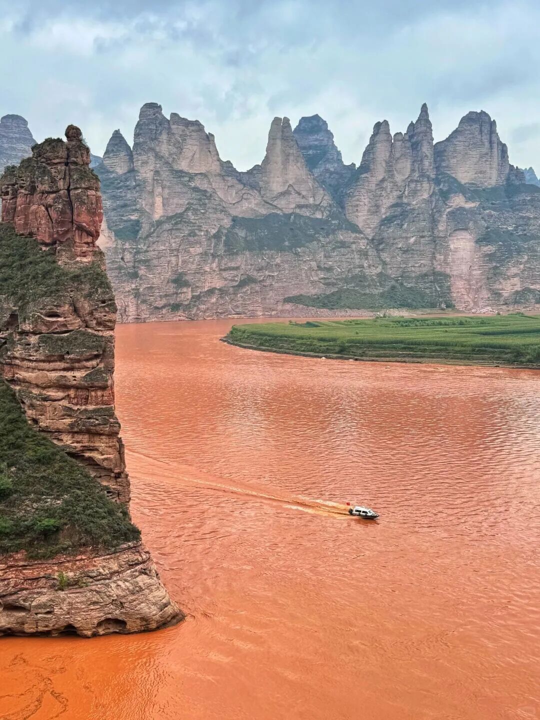丹霞峰丛与黄河交相辉映,状若万笏朝天