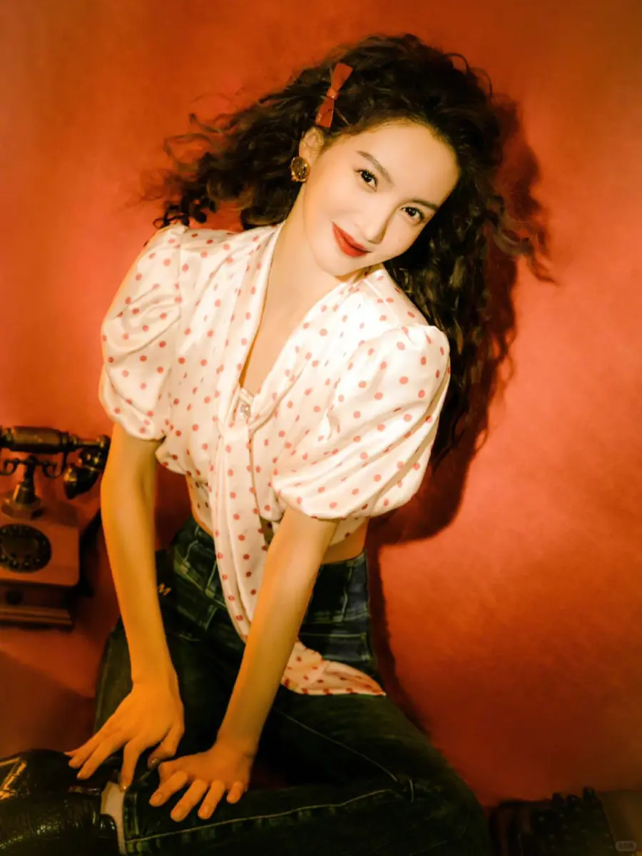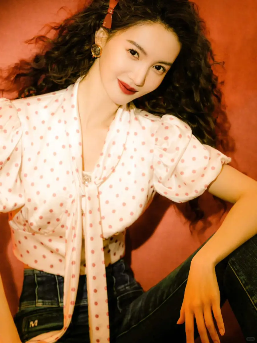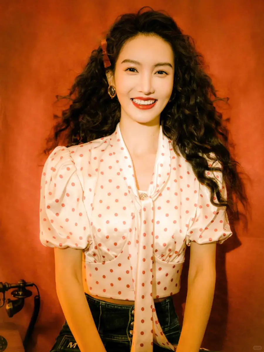 复古红唇妆搭配大波浪羊毛卷,加上复古首饰作为点睛之笔,好像小羊肖恩,又美丽又可爱