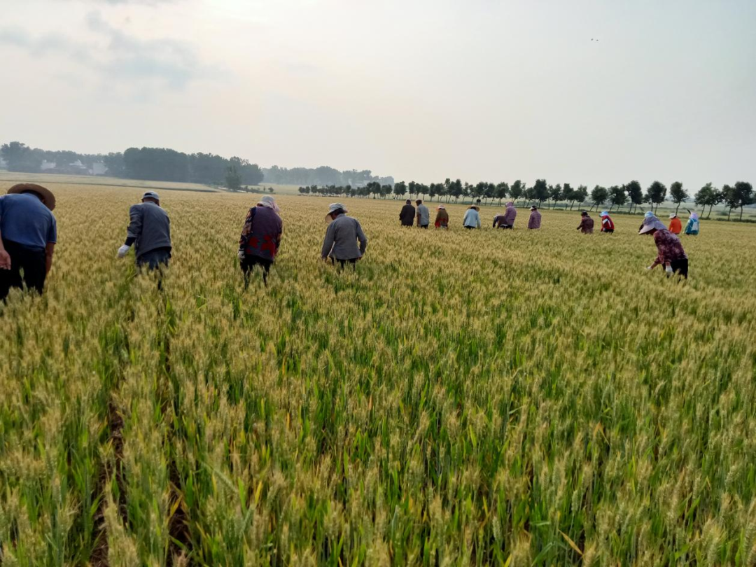 最近这些年,明显感受到天气变化。记得小时候南阳雨水一直没有这么多,当初选择淅川基地,主要是考虑到在南水北调中线渠首附近,没有工业污染,同时也是小麦优势产区。现在气候的变化,让南阳的小麦变成了中筋甚至中低筋产区。无奈中,今年在山西太行山小米基地和豫北都试验种植了高筋小麦。如果可以,小麦在山西、河南都种植,分散天气风险,同时中筋和高筋面粉都有。当然,日常食用也不是面粉筋度越高越好,烙饼子、做蛋糕等低筋反而更合适,看用途。面包吐司等需要高筋面粉,目前的面粉做馒头包子饺子比较合适。今年小麦扬花期再次遇到连续阴雨,同是丹江口水源保护地的邓州市十林基地,为预防赤霉病爆发,政府统一飞防打药,虽然已告知村里,同时让伙伴们奔赴现场,但还是有一小部分大约20亩有柔风过来,被波及到,只能单独收割,单独处理。至于如何解决赤霉病问题,两片小麦基地,经过几轮会议,决定快速用人工割除病穗,每个基地除了3遍。△组织人工摘除病穗