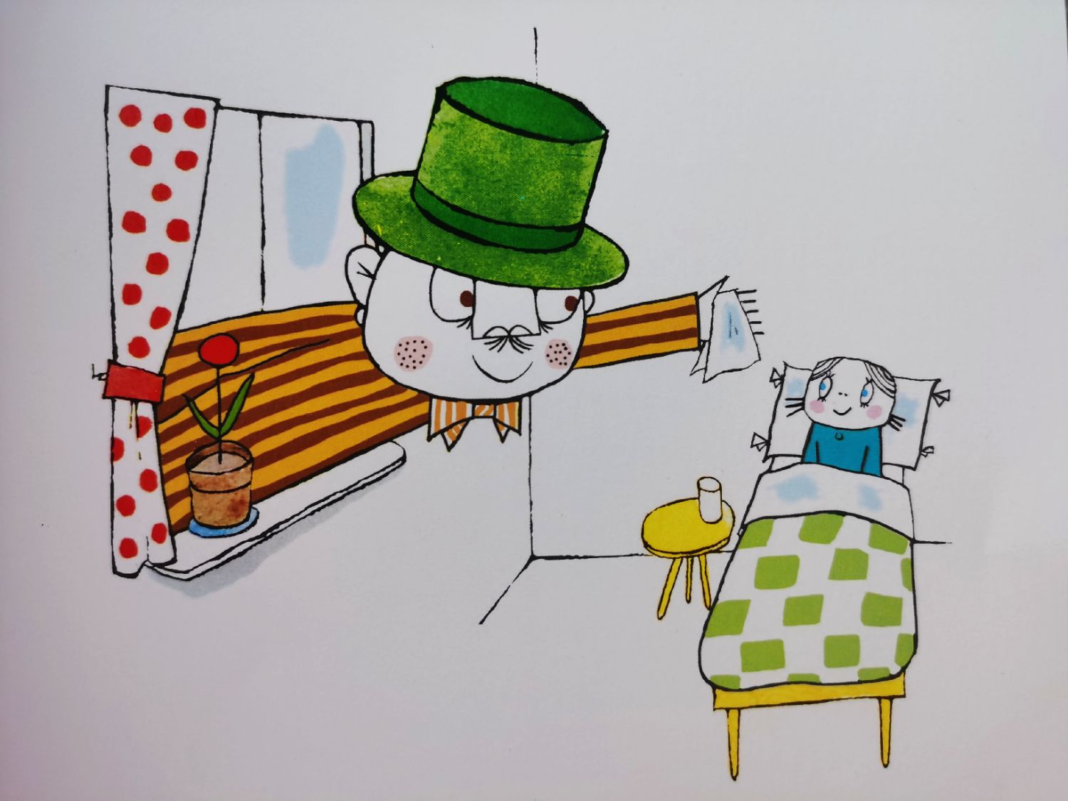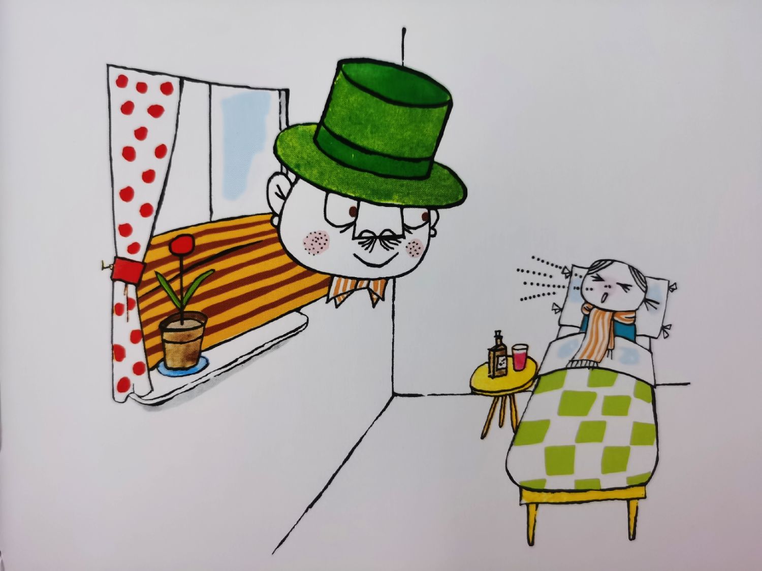 📝 作者用重复押韵的文字及简单明了的图画,夸张地构造出小安娜因为感冒打喷嚏吹跑了一系列物品的搞笑故事,委婉地告诉小朋友打喷嚏时应该用手帕捂住嘴巴,这样就不会吹跑东西了,无形中在告诉小朋友一些健康的卫生习惯,这样幽默有趣、不说教,不批评的教育方式实属机智。😜