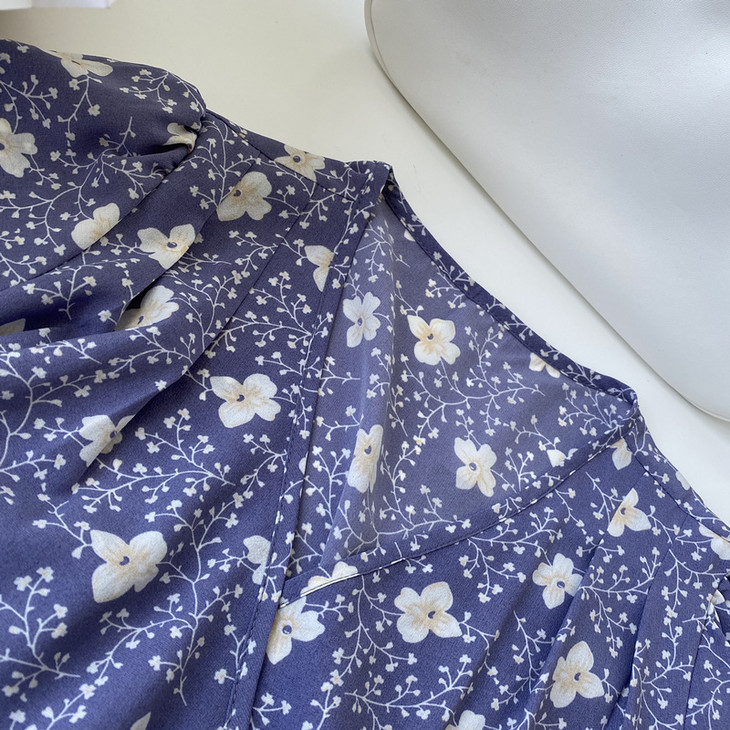 “”恋恋笔记本“”法式复古裹身裙碎花连衣裙