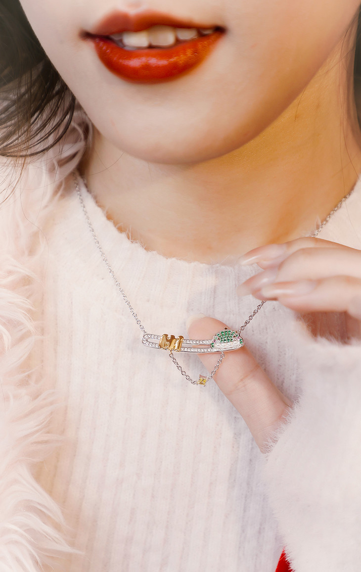 周大生仿佛在做一种新的饰品,独特的马赛克设计上身配戴小众特别