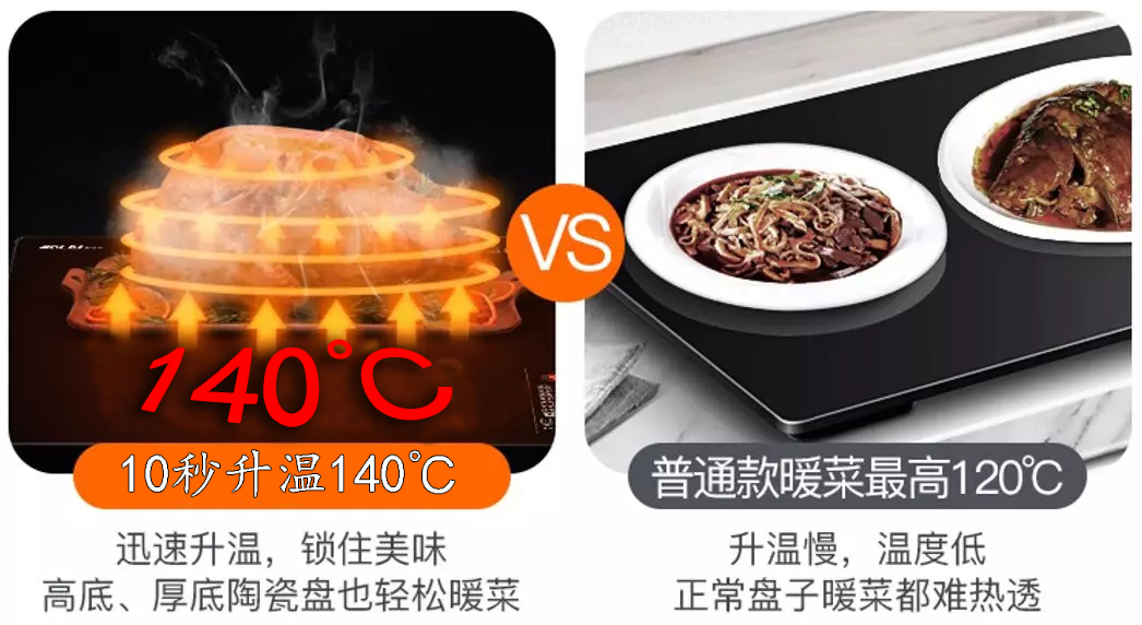 它能10秒速热,140℃高温热菜,持久保温保鲜。