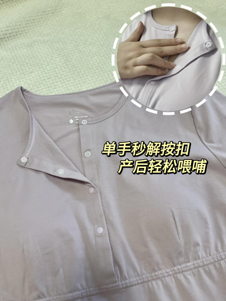 领口能解扣,对于孕妈妈来说哺乳更加方便快捷。