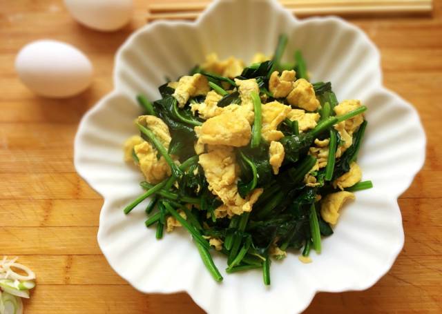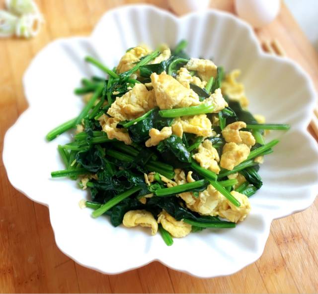 用菠菜炒鸡蛋,既好做又好吃,还非常有营养。