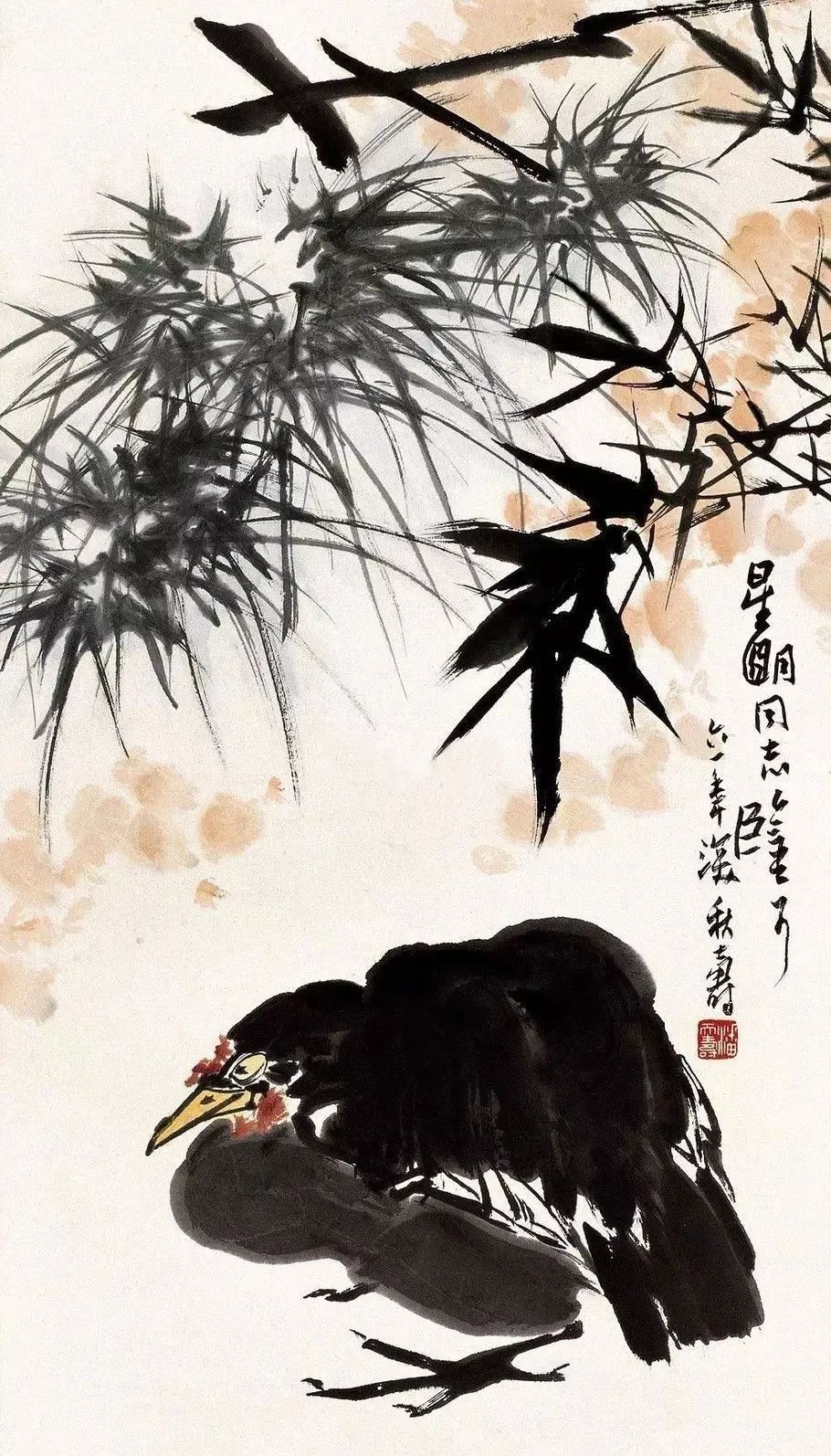 用湿墨作画,墨中水不能用的太多,太多臃肿浑浊,要求画面墨色有春雨酥润、华滋掩映的感觉。泼墨作画,要有水墨淋漓、气水恒流之势。宿墨自身具有黑、干和光亮特点,一般多用做提醒,宿墨多渣,作画如用不好,易枯硬污浊,用得好倒有厚重沉稳之感。用单色意思同上。