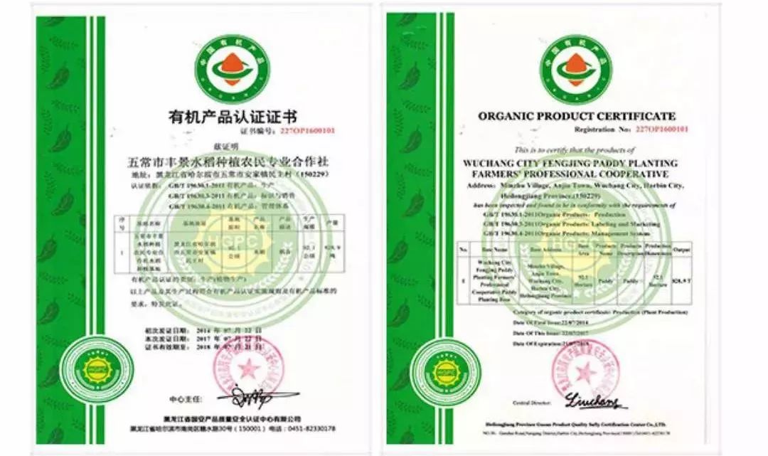 东北五常有机大米认证证书
