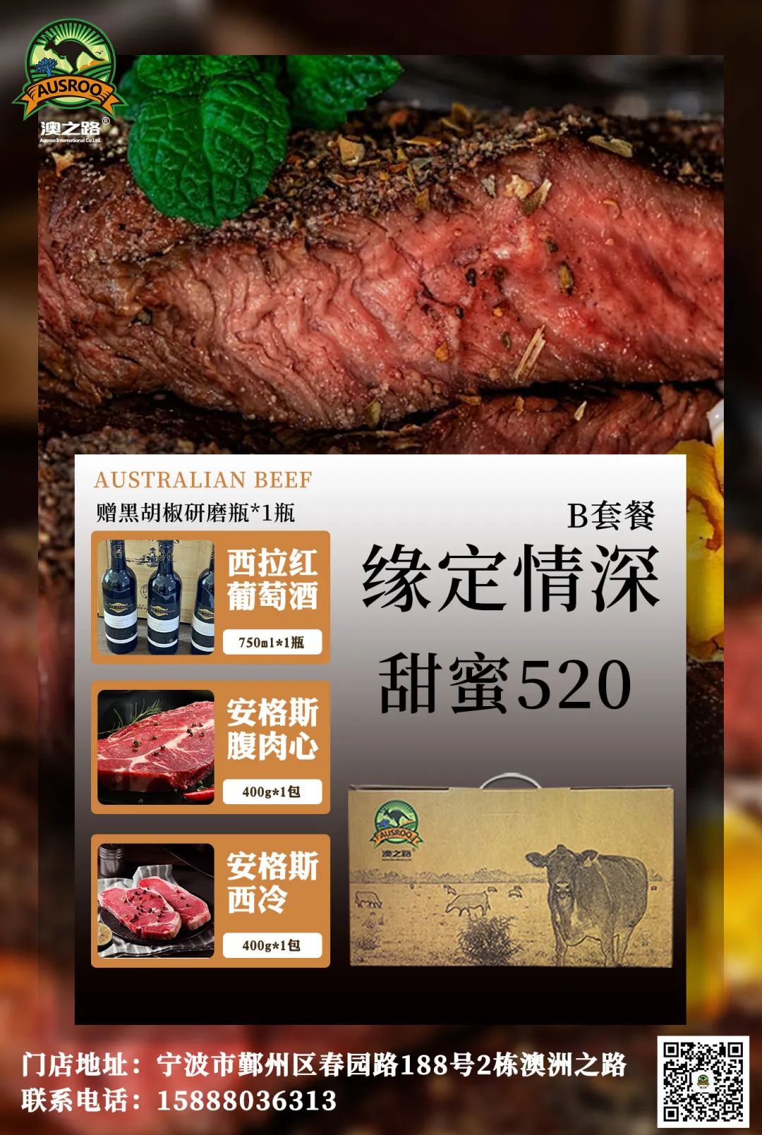 与“缘定情深”牛排礼盒一起,