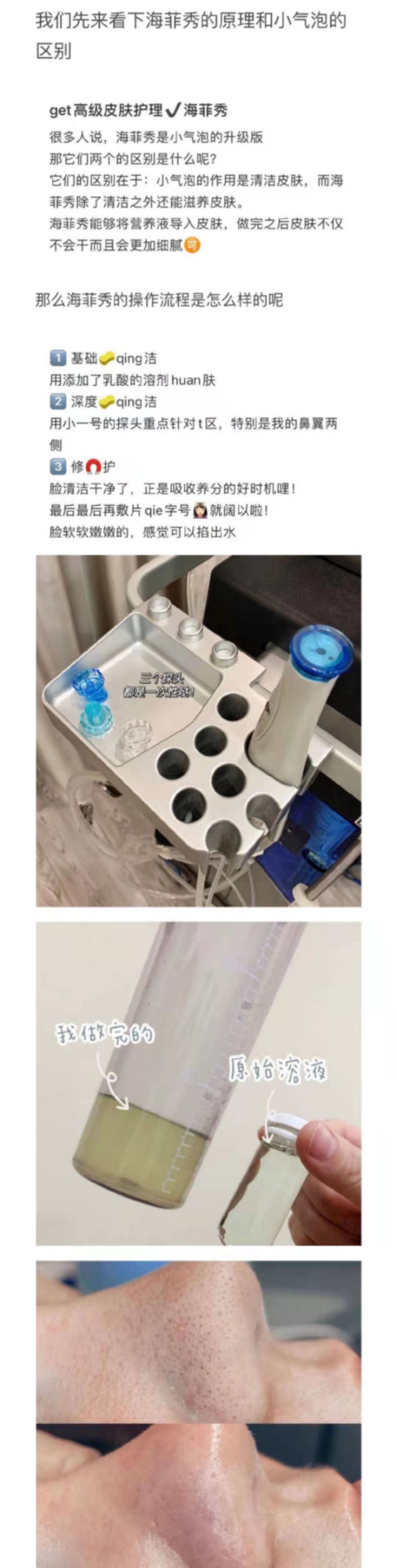 一个海菲秀=多个零散清洁项目,集低浓度刷酸、吸黑头角质、补水舒缓为一体。适合油痘肌!比洗脸仪、控油面膜等更有效,彻底吸油控油,剥脱老废角质。