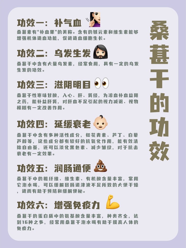 肝主藏血、肾主生髓,是人身能量储存基地。桑葚性味甘寒、具有补肝益肾的功效。