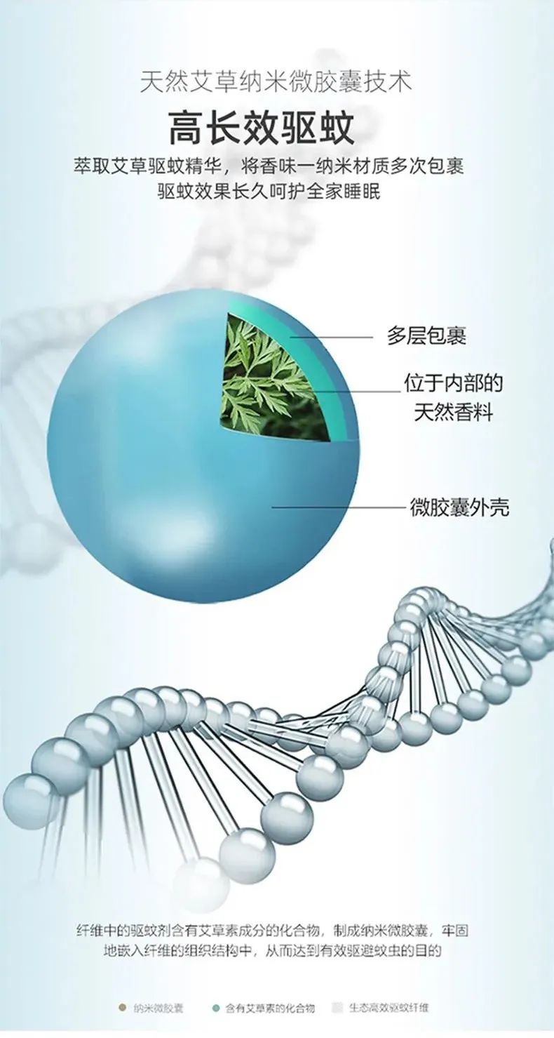 但这款艾草被,采用的是微胶囊萃取纤维的技术,将艾草精华用纳米材料3次包裹。