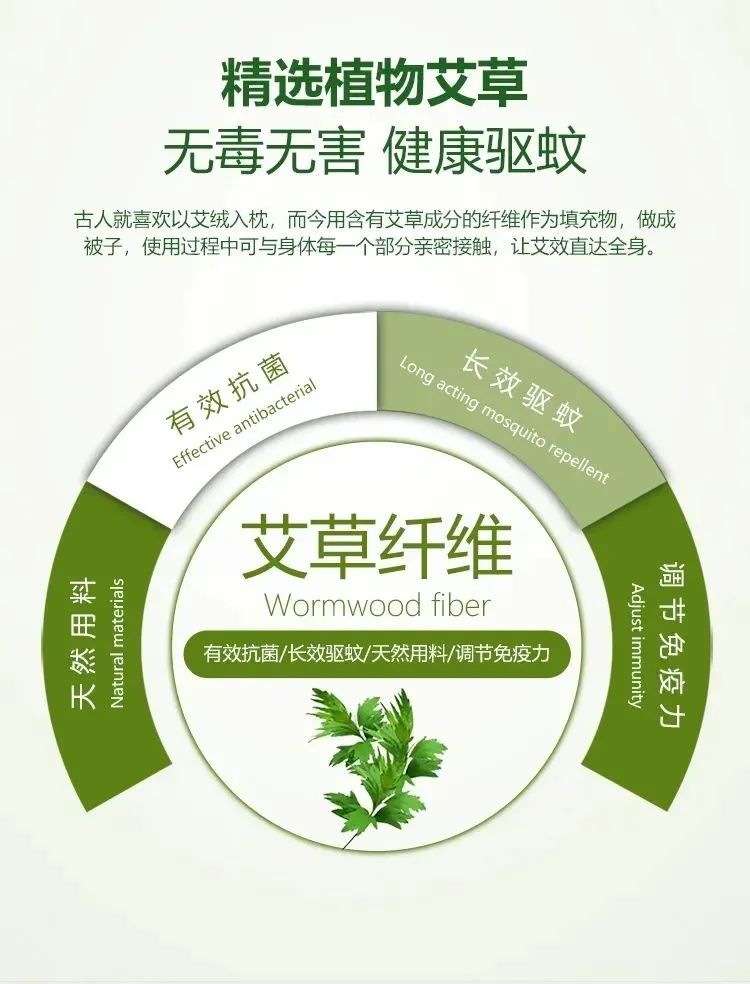 而这款融入艾草精华的被子不仅驱蚊,助眠,还带有抑jun的效果,是不是贼棒?