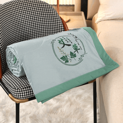 睡觉的时候盖着这个被子,淡淡的艾草精华会慢慢的释放出来。