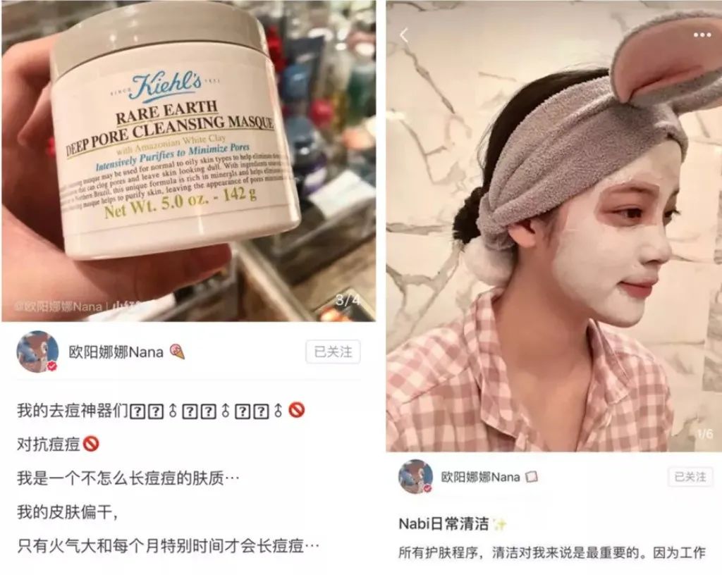 右脸用洗面奶进行基础洁面,左脸使用科颜氏白泥进行清洁。