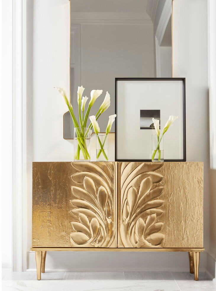 该系列还采用大理石、玻璃、黄铜、石膏以及天然的木纹和树叶饰面等材料,为室内增加了别样质感。今天分享多款单品蕴含丰富的黄铜元素,现代⼿法打造富有雕塑感廓形结构,不规则图形构成立体闪耀的金属质感,形成多维视觉层次感。大胆的设计如同艺术品般,家具也可以如此前卫而时尚。