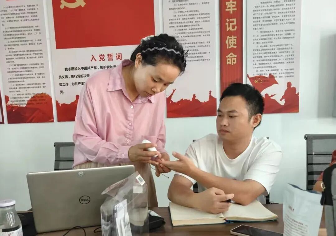 吃完后要每隔15-30分钟采一次血,两小时内每个人手上都要被扎7针。负责直播的倩倩一边直播,一边把手伸到旁边让同事采血,农友们都还不知道,屏幕外的她在默默“献身”。