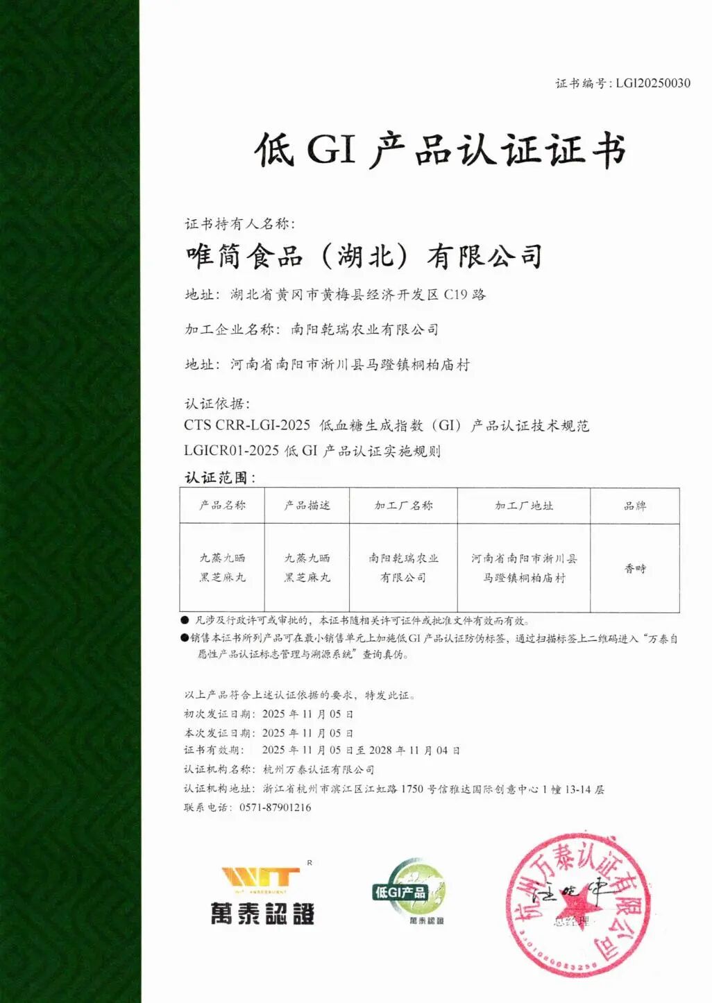 香畴芝麻丸去年获得了有机认证,加上这次的低GI认证,这份双重认证,就是希望这款传承千年的食养佳品,能够滋养更多的朋友。