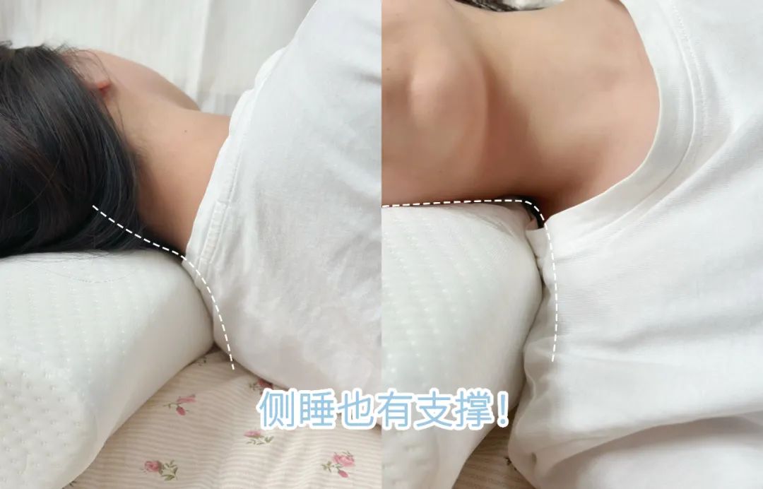 左右也都有侧睡支撑区,睡着舒服又不压脸,避免挤出/加深法令纹~
