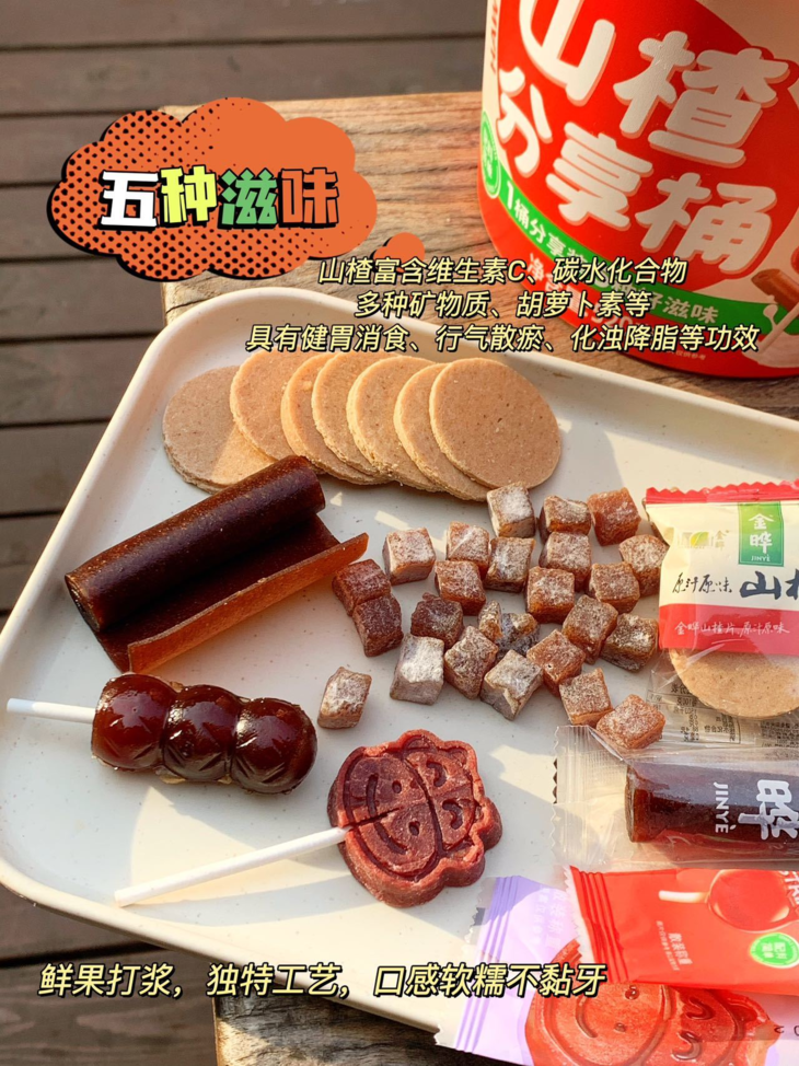 【金晔山楂分享桶】🪅六一儿童节🎉献礼-,儿童节给宝宝的礼物 🎁🔥一桶五种好滋味‼️ 内含:酸奶山楂丁➕山楂片➕桑葚小牛➕山楂串串➕山楂卷🍀 👍开味一桶,一桶享尽酸甜‼️独立小包装,✅便携易携带,✅一袋都是料,✅满满鲜果味道✅ 妈妈放心的选择,多重检测验证 严格把控生产环节,一桶可以全家人分享 鲜果打浆无添加酸甜美味健康🈚️
