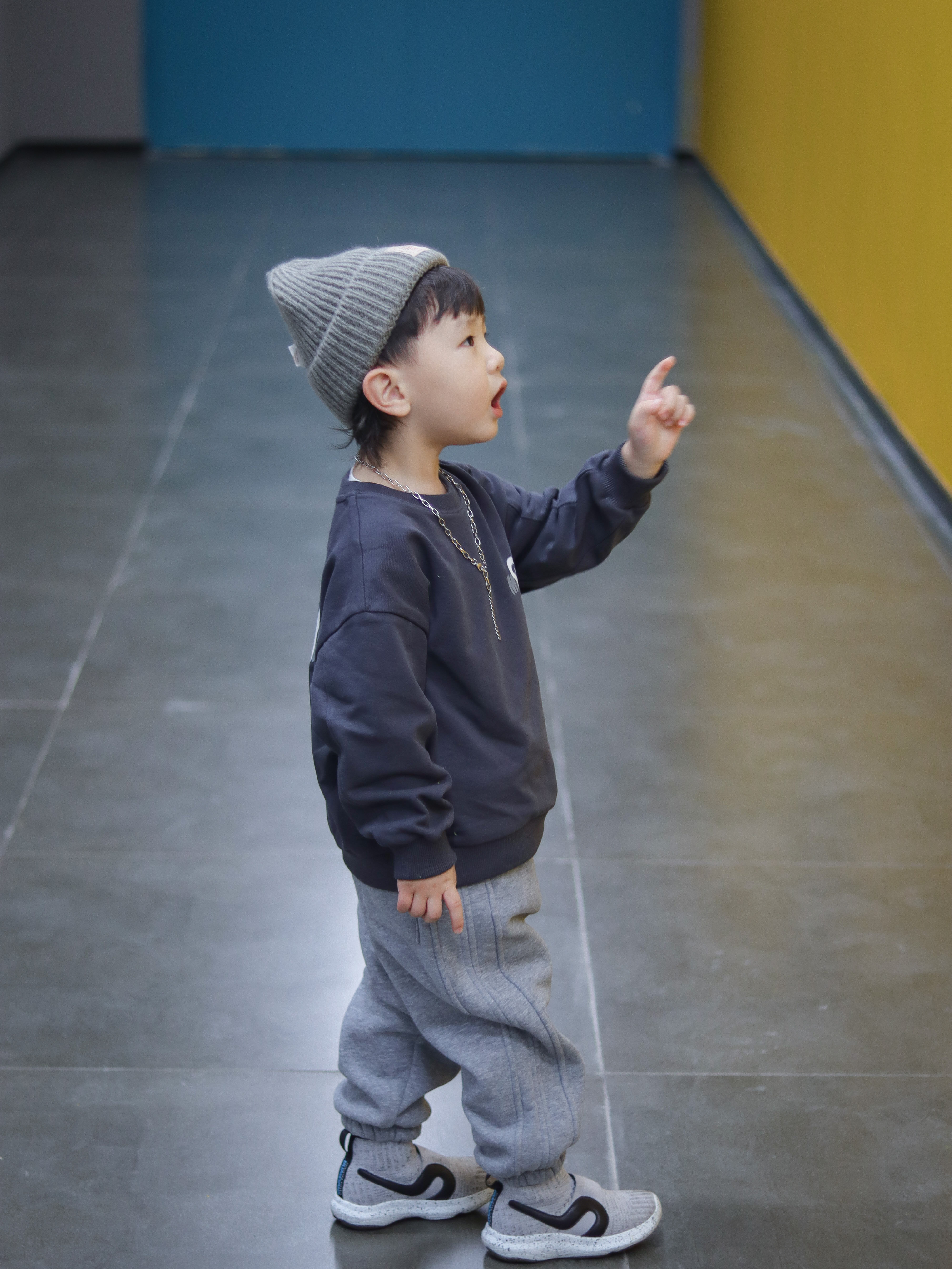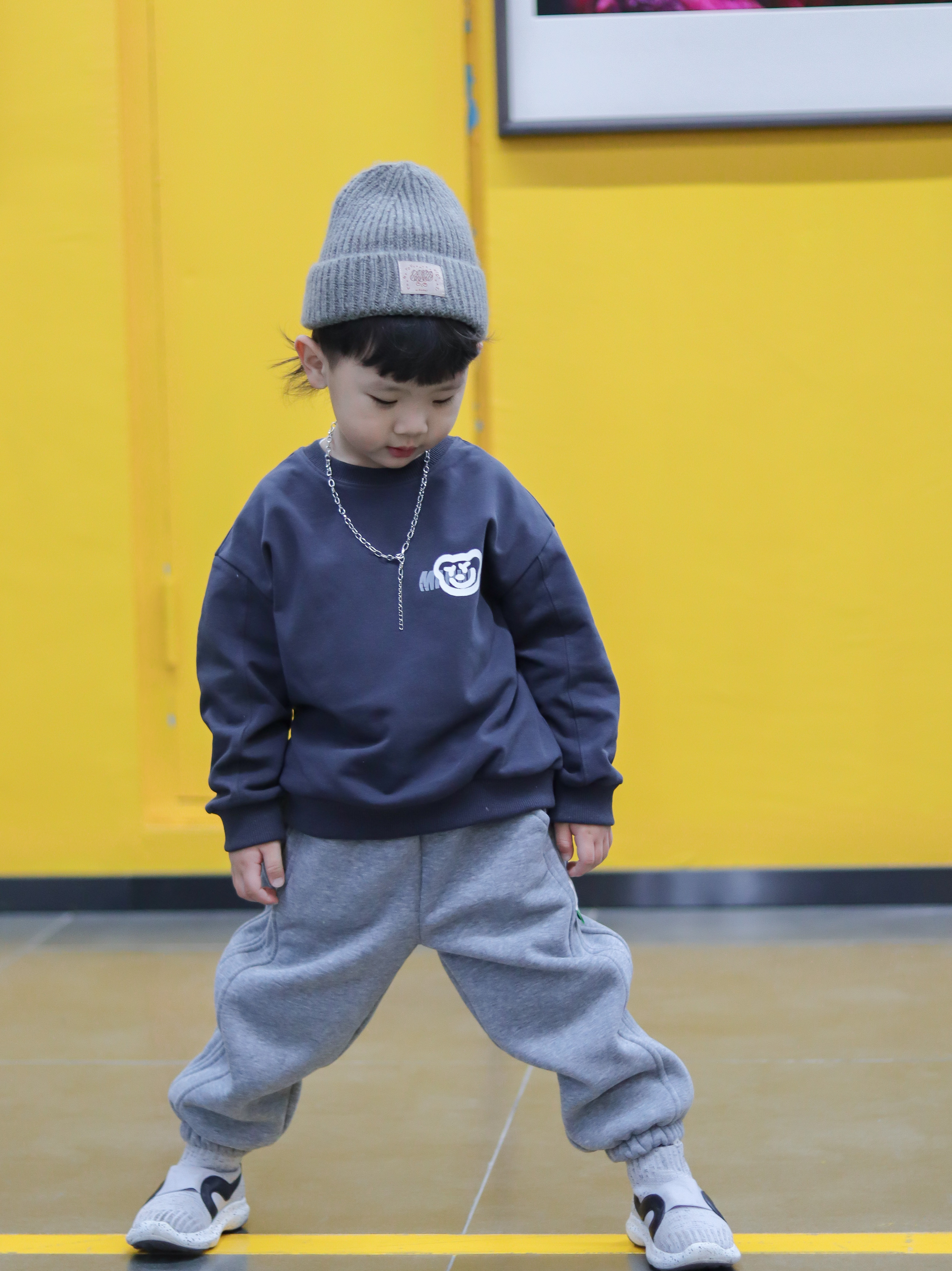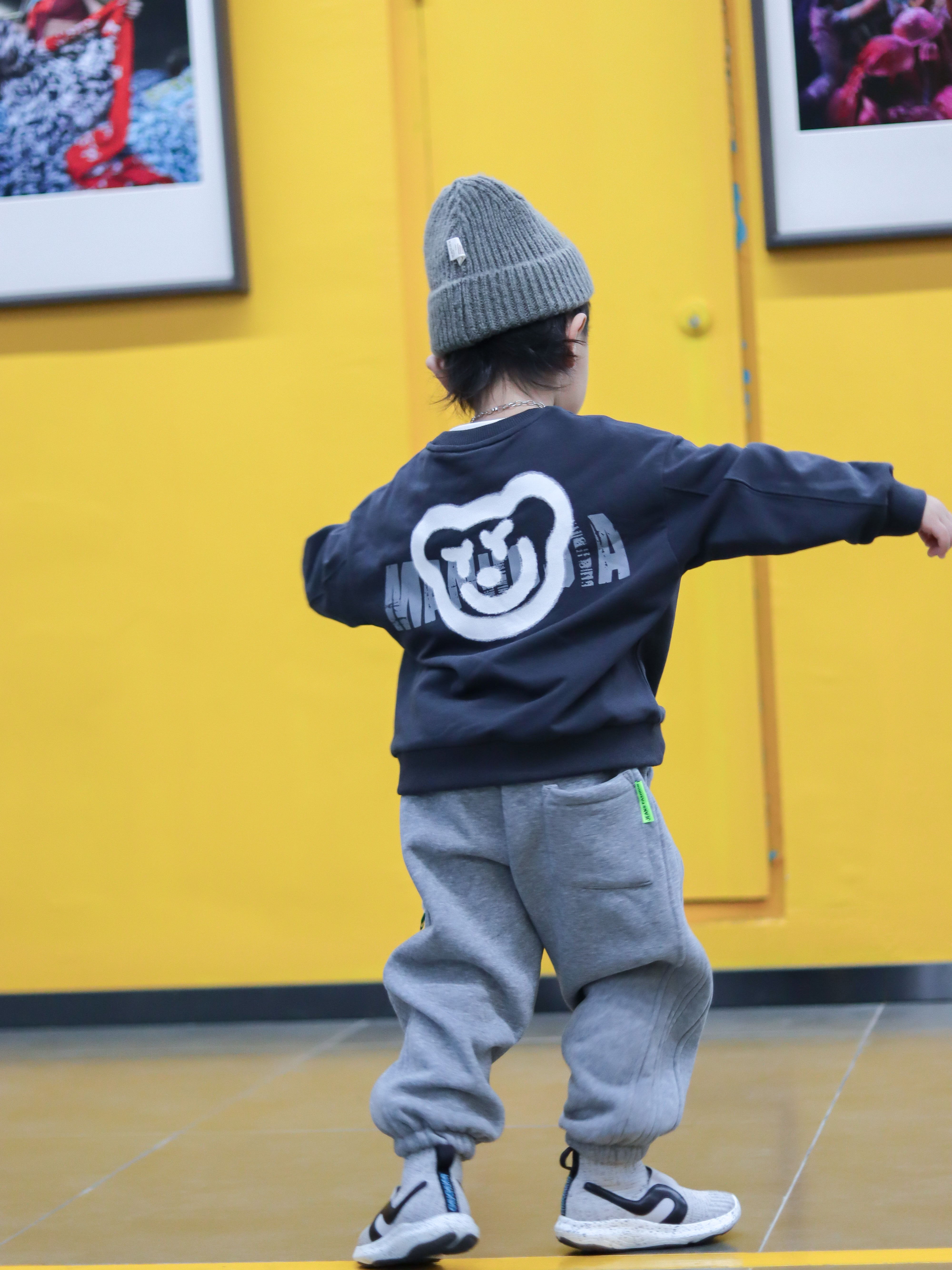 快乐会传染假黑卫衣搭配一条宽松裤,慵懒休闲。加一点穿搭小心思,帽子、裤子、鞋子同色系,一整套简约和谐,非常好看!!!