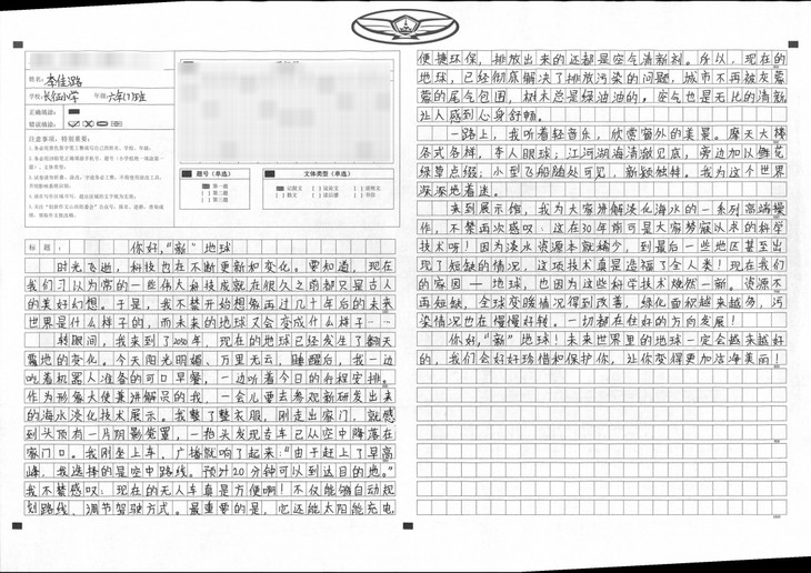 孩子的世界是美好的,同时,孩子的想法也是最单纯的。当我看到这篇文章的时候,不禁感慨万千,文章不仅文笔细腻,而且最吸引我的是这篇文章的立意。立意即孩子的为内心想法,在孩子的心里,考虑未来世界发展的同时,还能想到地球当下的生态环境,这让我很赞赏。