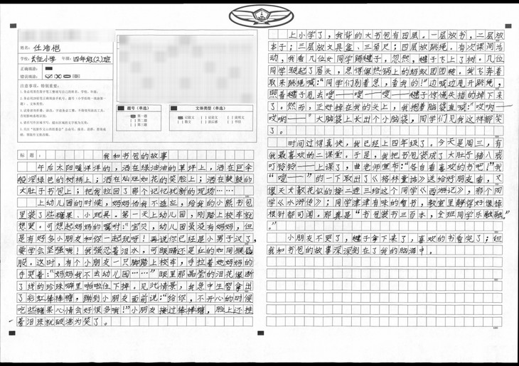 书包对每个人来说并不陌生,开头我用“阳光三洒”点题,中间先写幼儿园小朋友第一次接触书包的难忘故事;然后写小学初期和书包的美好经历;再写成长为四年级学生,书包带给我的不同感受;最后用“三消一有”写我对书包的深厚感情。