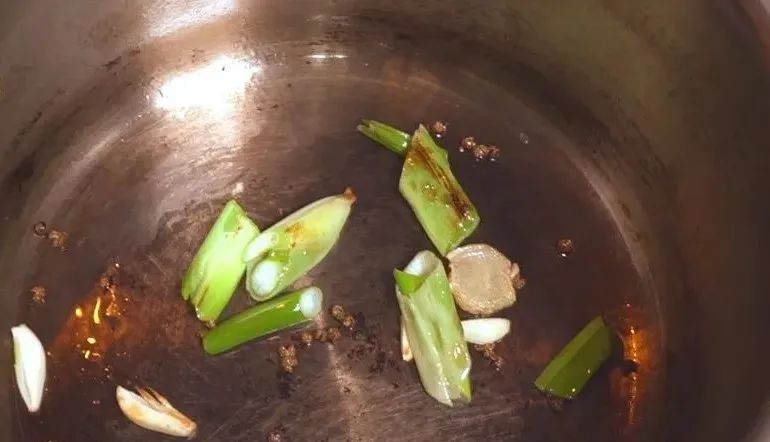 锅中倒少许油,加入葱姜蒜、花椒爆香,再加入大量开水