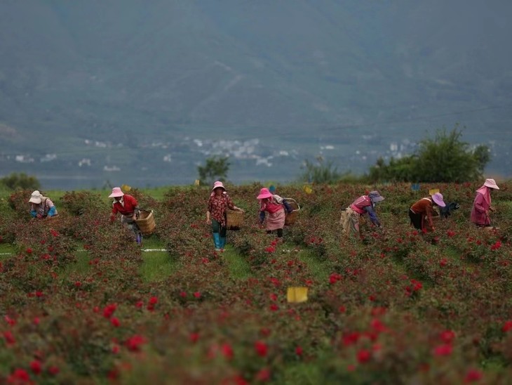 这个土壤肥沃、气候温和、雨水充足云南中部小城弥勒极其适宜玫瑰生长,红玫瑰和红葡萄酒、红糖并称为弥勒三红!