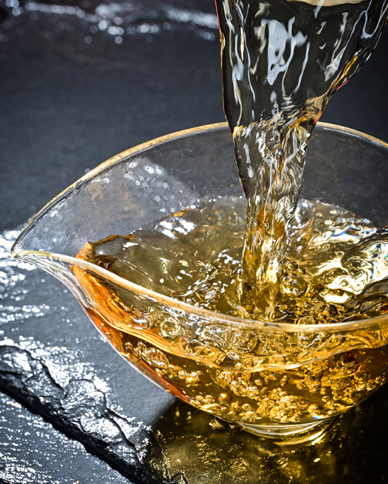 开汤便是透亮的金黄色,没有杂味干扰,像藏剑山庄二十年如一日的坦诚;干茶时带着淡淡的山野清香,冲泡后初尝带有涩感,那是古树茶自带的倔强,转瞬回甘便漫上喉头,喉韵悠长;再品是浓郁的烟香夹杂着兰花香,层次丰富,不张扬却持久,仿佛站在清晨的茶山,闻到第一缕漫过茶林的风;没有刻意追求的厚重,却有“久喝不腻”的通透——这正是郭少华心中“初心该有的味道”。