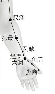 肺经上分布着三个很重要的穴位,分别是尺泽穴、孔最穴和太渊穴。