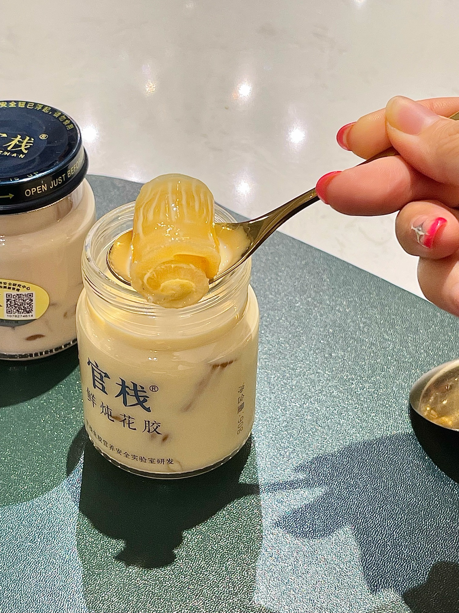我常吃花胶,每天一小盅,里面包含很多大块的鱼胶,Q弹有嚼劲儿,最爱的口味是杨枝甘露!超好吃!嘴馋的时候从冰箱拿出来当零食吃,美味又健康!(鲜炖即食,冷链运输,15天保质期,食材非常新鲜)