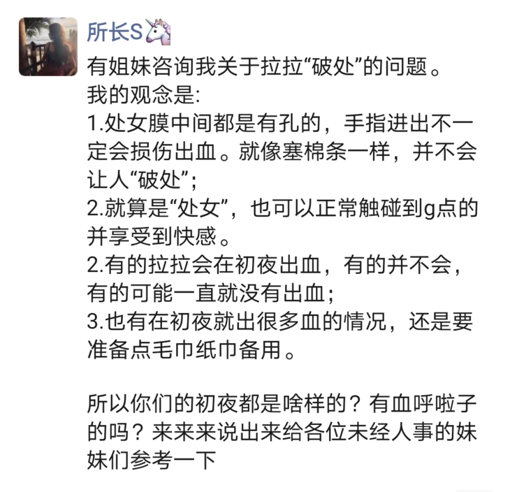 相比之下,部分直男的x知识不够就觉得女生第一次就应该疼又出血,忍忍就对了。(感谢票圈姐妹提供思路)