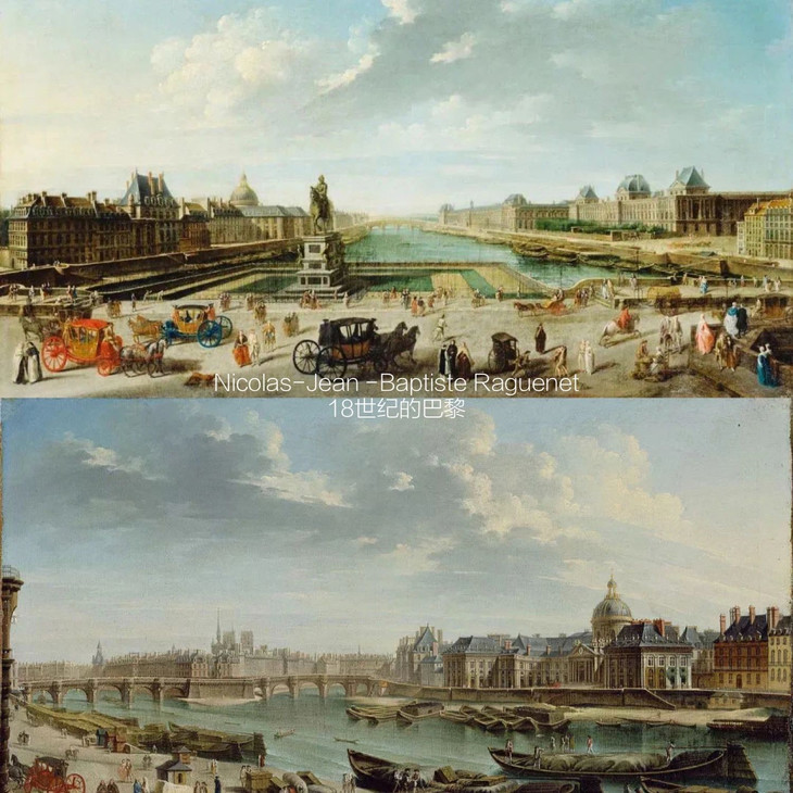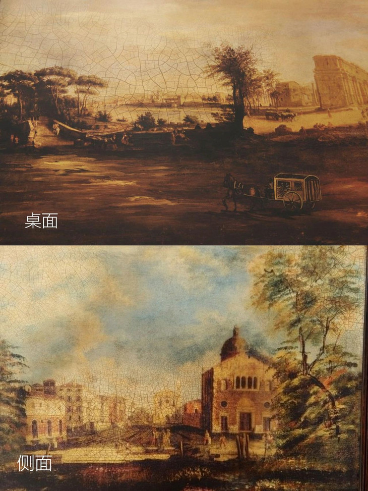 这是一款来自汉诺威王朝后期风格的精美的古典边桌面的景风画,让人起想知名法国画Nicolas-Jean-Baptiste Raguenet笔下18世纪巴的黎:矗立的城堡,奔腾的河流,争流的船舶..
