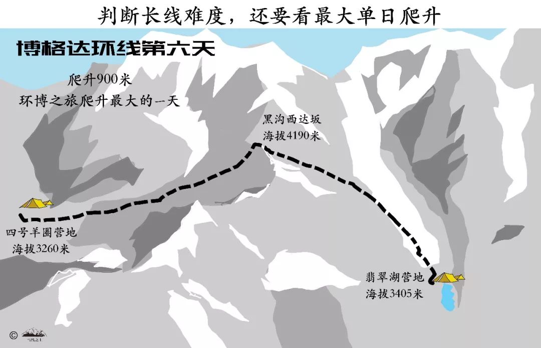 如果你已经有三天小长线的经验,接下来可以尝试五天的;如果你平时的单日爬升量超过该路线的最大单日爬升量,它会更适合你。