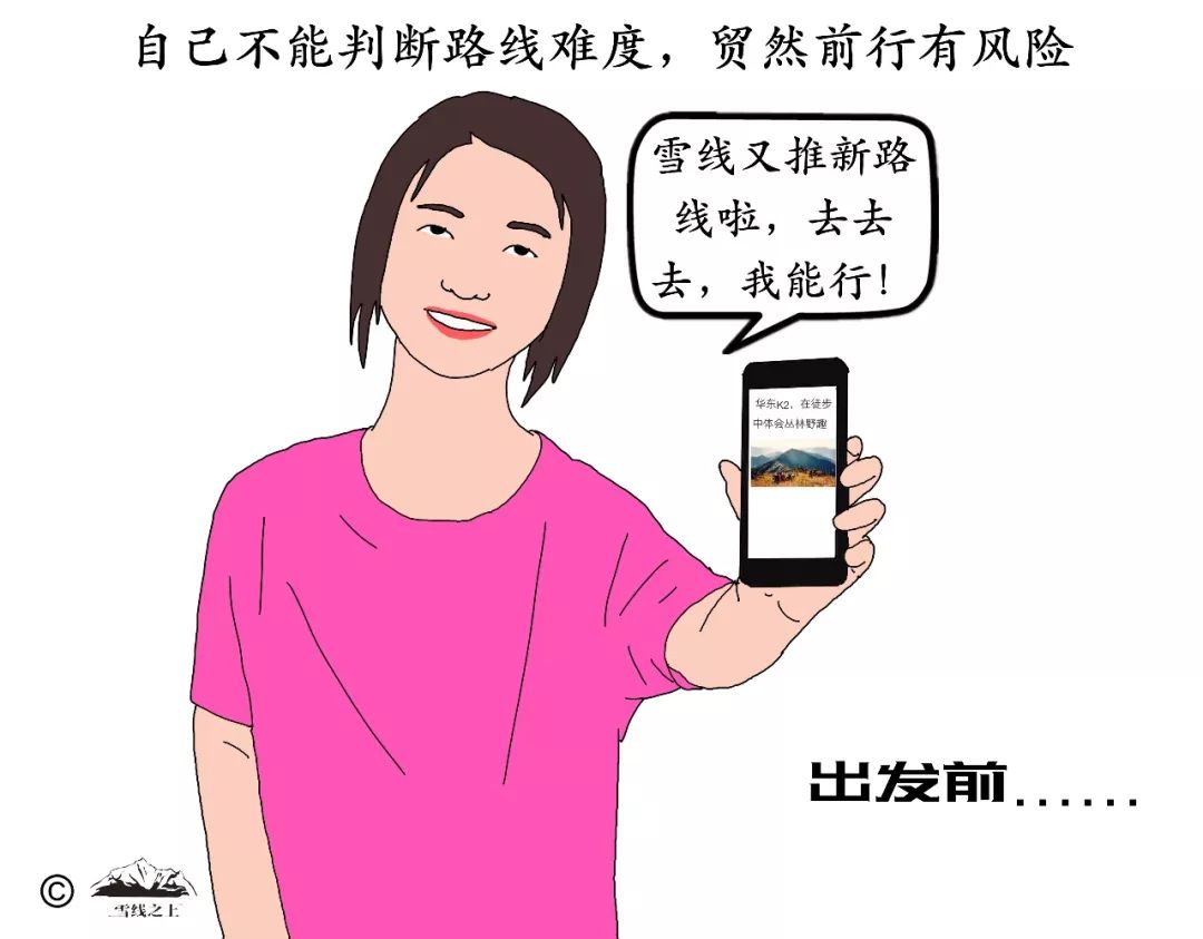 你也不能不判断路线难度。如果你看到一条很美的路线便欣然前往,结果很可能会耗尽体力,从白天走到黑夜还没有下撤,危险倍增。