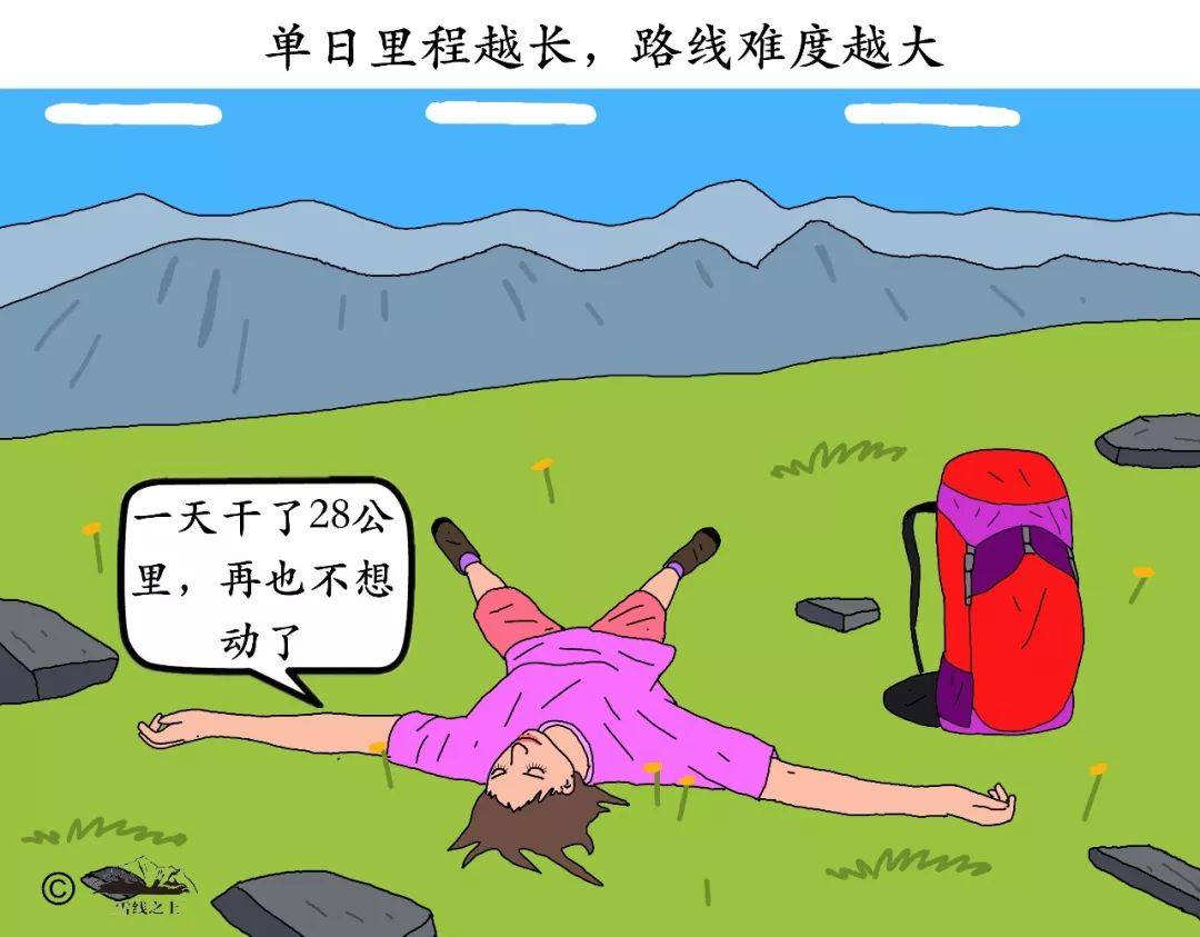 行山走路越久,肌肉做功越多,你会越累。所以单日里程越多,路线难度越大。