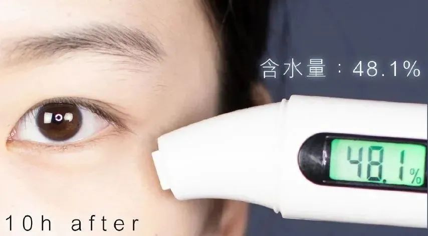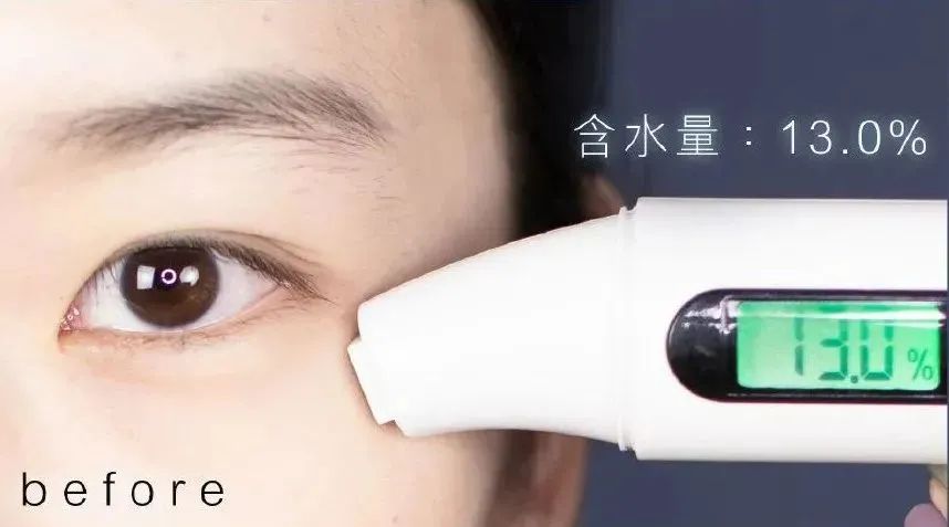 原本含水量只有13%的干燥眼周,在使用小棕瓶眼霜后即刻水润嘭弹,即使在空调房内呆10个小时,也依旧非常润。