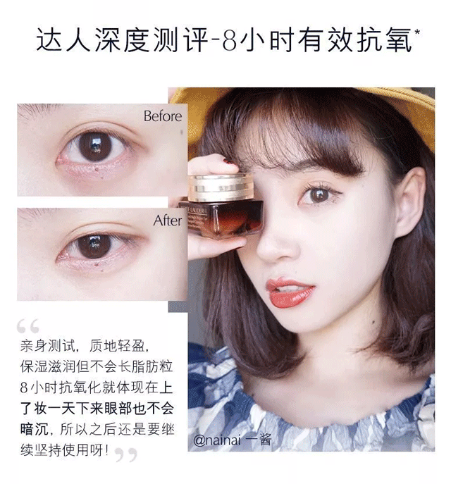 让眼周肌肤更加紧实、通透、亮泽。整个人精神状态也更饱满,散发出神采奕奕的光芒!
