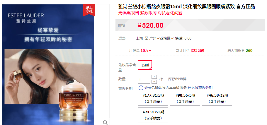 限时5折!雅诗兰黛k蓝光眼霜,啖化眼纹、眼袋,熬夜星人必备!
