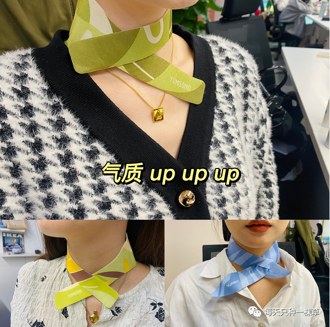 昨天TK刚拆开一盒,小伙伴们就你一张我一张抢着戴上了。颜值也太好看了吧,系上就跟个小丝巾一样,搭衣服也很绝,不知道的,还以为误入某航空乘部。