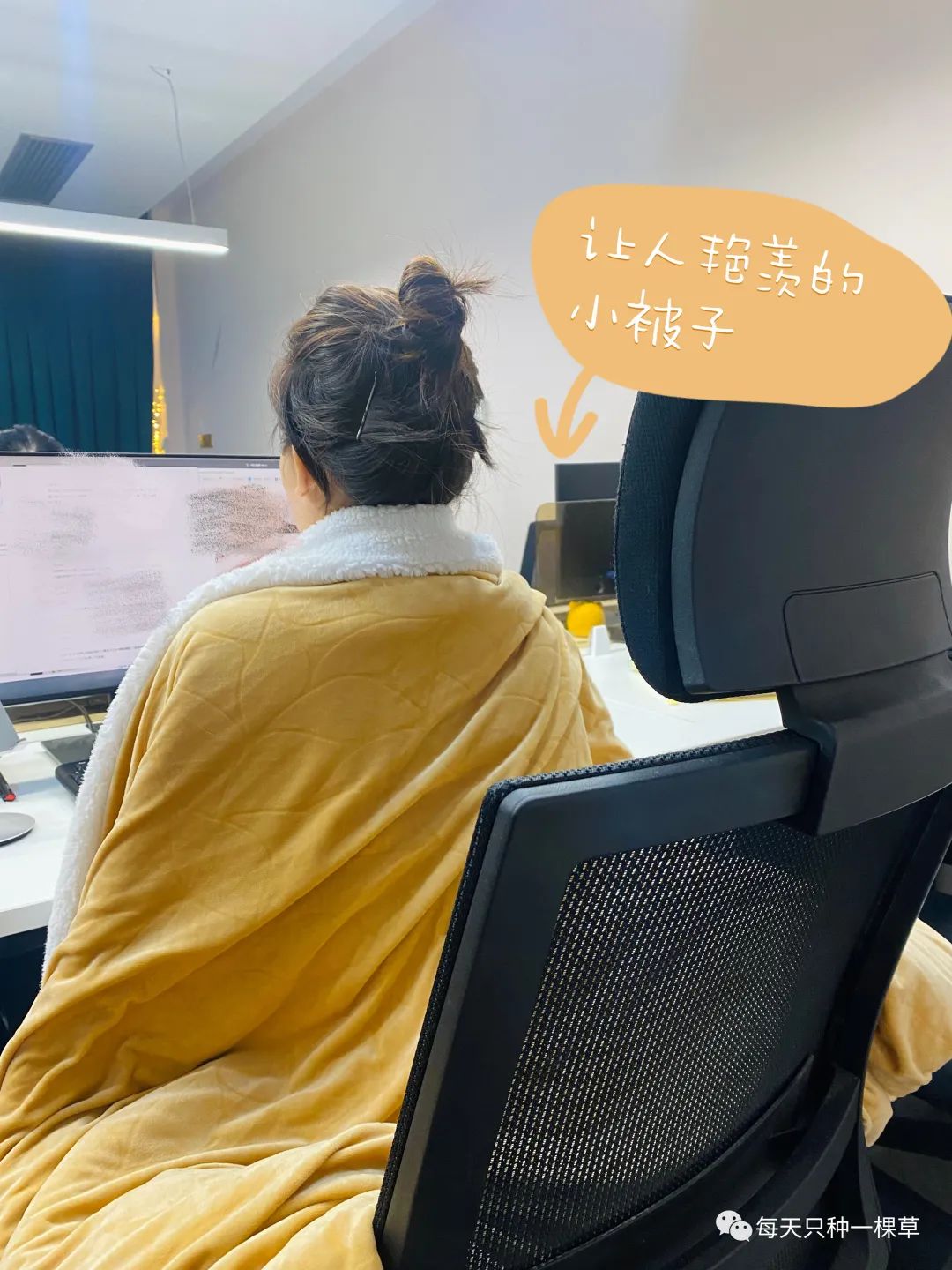怕冷的同事Yuki说,秋冬一定要有一条暖感毯!前几天她带了个毯子回公司,我们都说也太夸张了!
