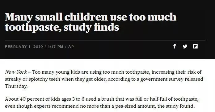 👆 美国疾病控制与预防中心(CDC)研究成果:很多孩子过量使用含氟牙膏,将大大提高日后患氟斑牙或氟牙症的风险。