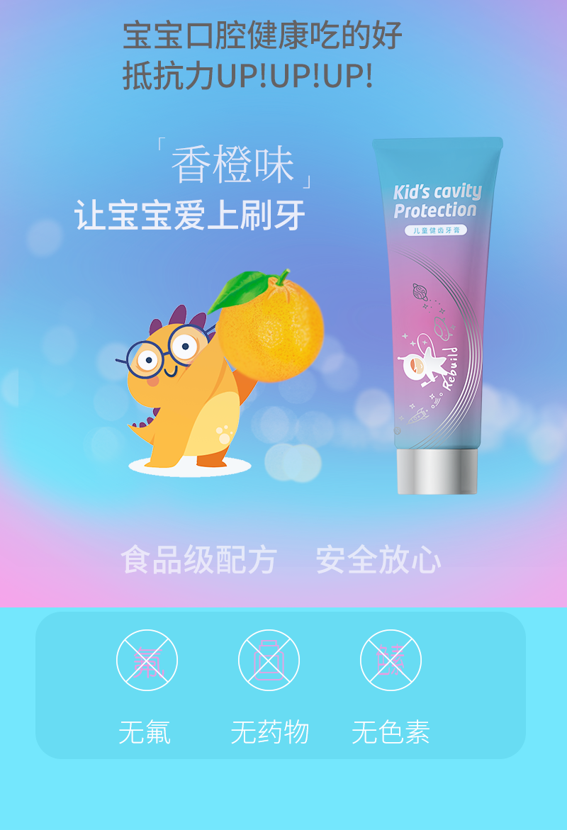 另外非常重要的一点是,儿童在还没有自控能力时(3 岁以下)建议不用含氟牙膏,以免误吞。诺必达Rebuild儿童健齿牙膏,是食品级配方,吞咽无忧,各年龄段的儿童均可以安心使用。
