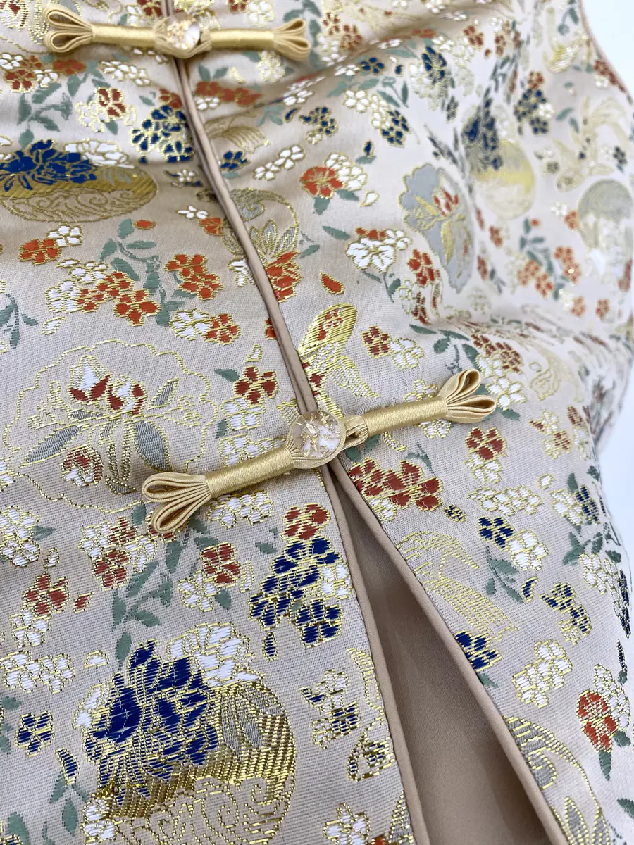 花开富贵重磅提花面料,光泽感媲美宋锦,织金工艺,奢华精致。