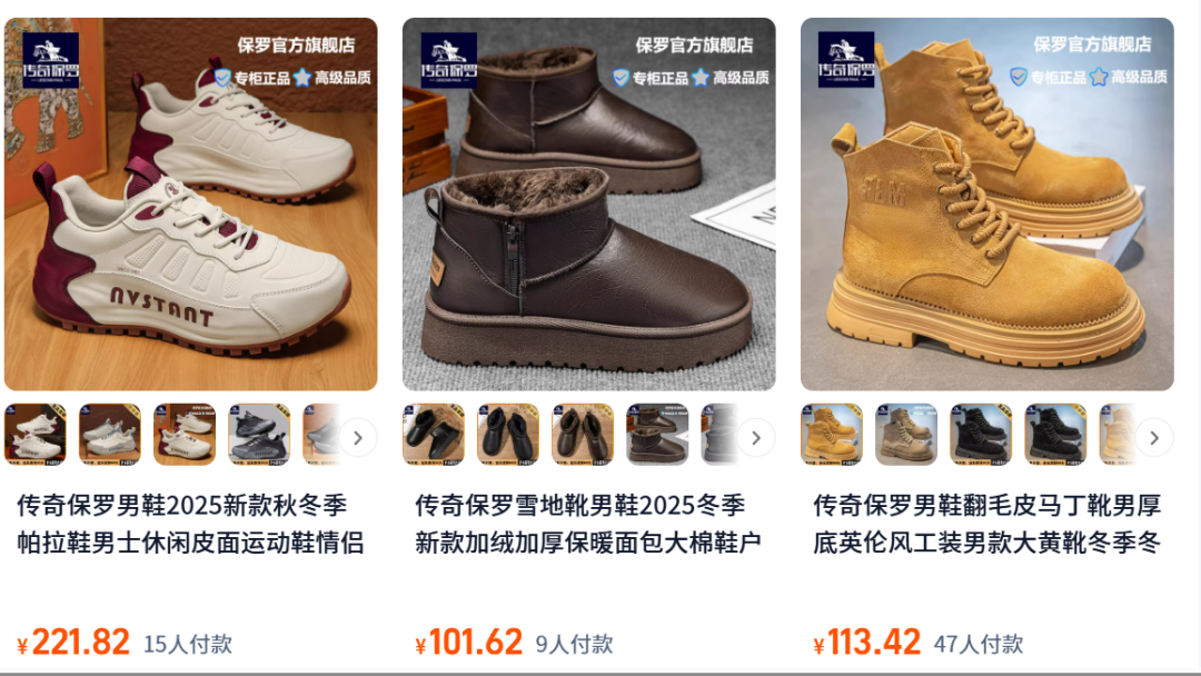 上某宝搜,传奇保罗的鞋子均价都在百元左右,妥妥的国货良心价格。