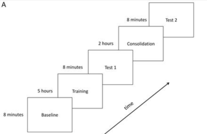 研究首先发现,含氧血红蛋白浓度的幅值在双侧颞上(superior temporal, ST)、缘上(supramarginal, SM)和左侧顶下皮层(inferior parietal, IP)升高,但该神经改变是在语音学习后经过两小时的睡眠巩固才出现的(图A)。