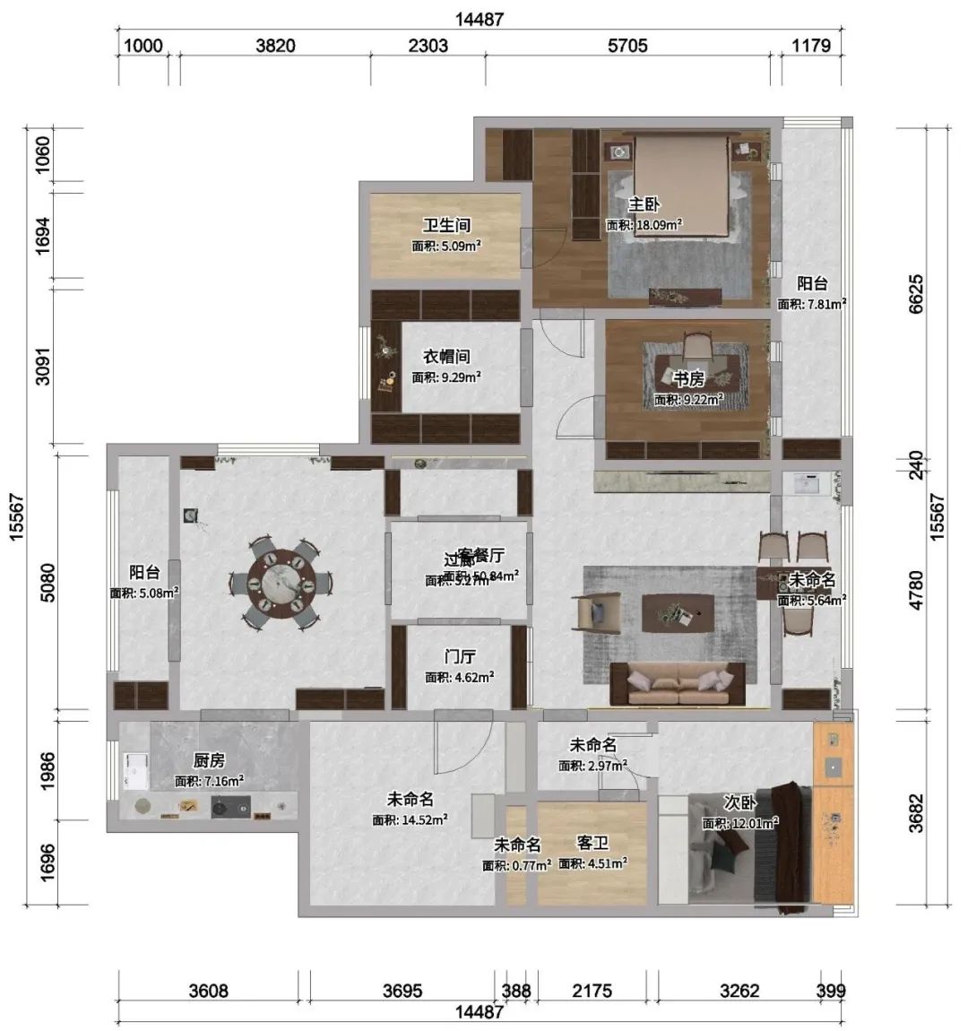 2. 全屋木制作、家具使用北美黑胡桃,保证美观统一的同时确保环保健康;