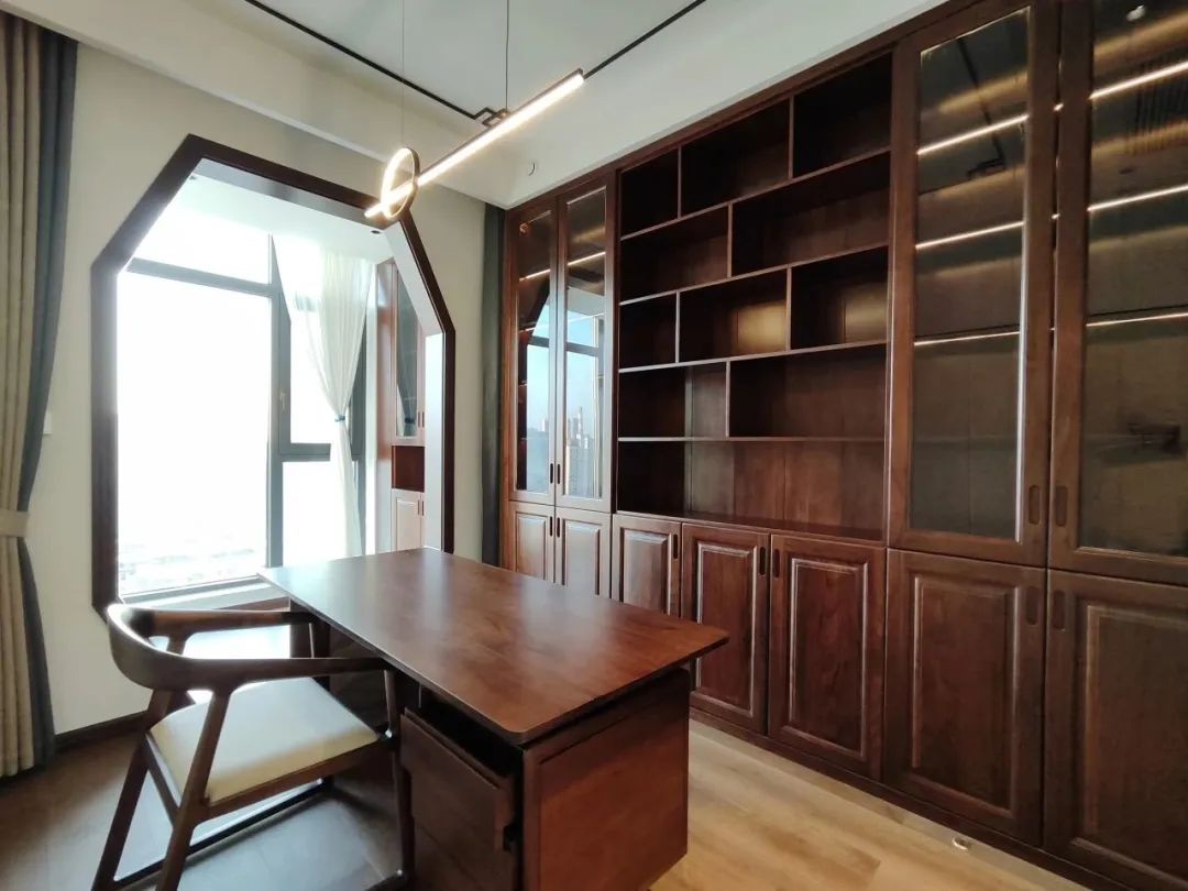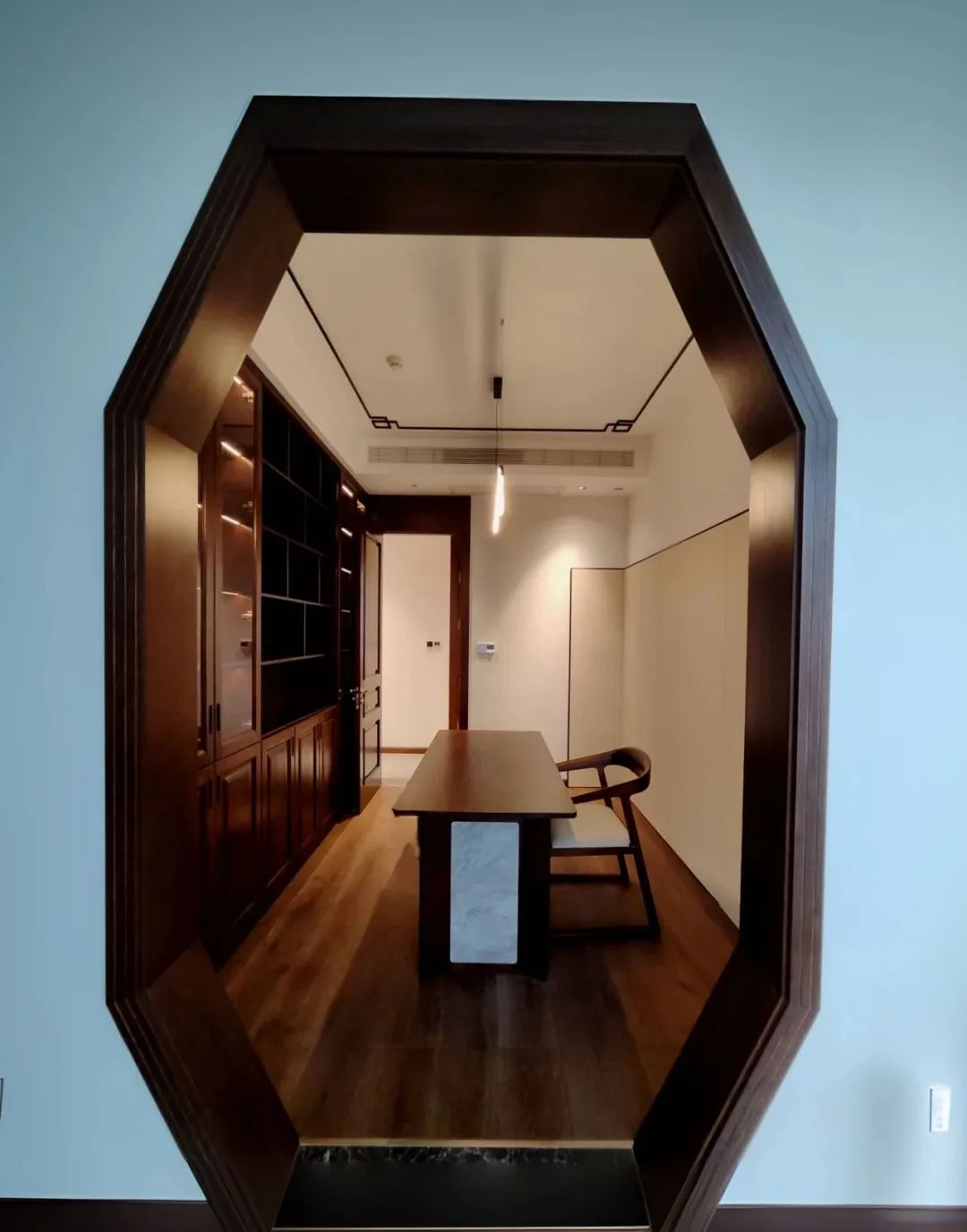 多边形实木垭口套给这个书房空间增添了雅致韵味,更具中式之美;