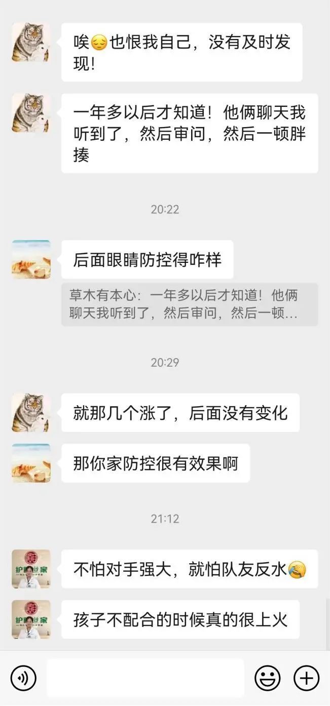 一方有惑八方来解,近视防控群里的妈妈们纷纷“建言献策”,分享自己的“破案史”。